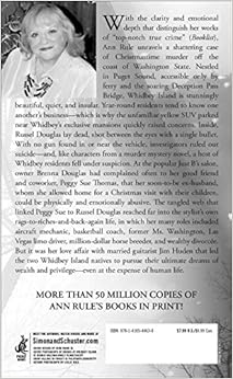 I usually fly through Ann Rule's books. I have read The Stranger Beside Me three times. But, I had to struggle to get through this one. I don't understand why she picked this case. The story is boring, with no hook whatsoever. Rule does warn the reader that it can get quite confusing, as there are many different characters involved in this story. However, it seems like there are 2 or 3 completely different books in here. With Ann's books, she usually has a way of giving all her stories and characters depth and intrigue. This is a story that is lacking. There is no apparent motive. Ann usually has the keen ability to get into the heads of the victims and killers she is writing about. The victim here is pretty much forgotten after the 2nd or 3rd chapter. I also remember when Ann's full length books (not the case file ones) were 500-600 pages. This one is a little over 300, with the bulk of the story having nothing whatsoever to do with the killing. Also, the pictures are a little....odd. I looked and looked at one of the images just to be sure, but it really looks like Ann photo-shopped herself in a picture between the prosecutor of Whidbley Island and, what is captioned as the main detective on the case. I'm not a person who knows much about how to photoshop or what it looks like, but it very obviously looks like her picture is cut and pasted here. Also, the picture under it is captioned as Ann and the main detective, the same detective from the photo-shop picture. Yet it is clearly 2 completely different people in both pictures. So, one of them is the detective and one of them is someone else. It's just very strange. I don't know if Ann has lost her touch, because her last full length book about the Rhonda Reynolds case was very lackluster as well. Maybe Ann should just write the short story case file books from now on. I will continue, however, to reread old greats such as The Stranger Beside Me and Small Sacrifices and And Never Let Her Go.