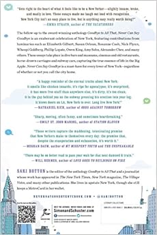 Will Hermes, author of Love Goes To Buildings On Fire"[These essays] celebrate life in New York City in that quintessentially New York way. They kvetch as much as they kvell. They lament the indignities even as they lionize the perks. With humor, candor, and often deep soulfulness, these writers capture the maddening, intoxicating promise that New Yorkers make to themselves every day: the promise that, despite the exasperation and exhaustion, it’s worth it." —
