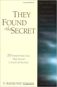 If you've reached the place in your Christian walk where you find you're running on a tiring performance treadmill offering no end and no rest, then V. Raymond Edman's They Found the Secret is the book for you, because it certainly was for me. I was prompted to get this book after hearing Charles Stanley speak and write about it on several occassions. In my own walk, I had no peace, no rest. Ministry was just work, work, work. If I could have transferred certain people to the Aleutians, I'd have done it. That's when this book came around. Through very simply written mini-bio's, V. Raymond Edman explains how each person literally "stumbled" into the abiding life (John 15), and how after stumbling into it, their Christian walk and life was revolutionized. Such is my own testimony. Regardless of your personality type, in one or more of these sketches, you'll see yourself and what you need to let go of. Once you do, then you, too, will have found the secret.