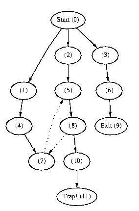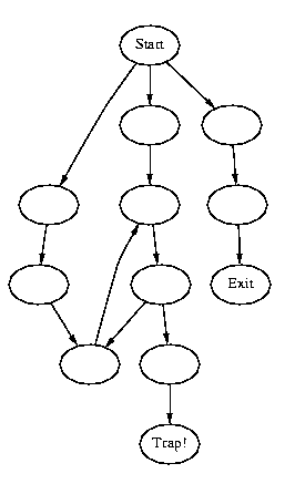 Notice that by using breadth-first search we would find the exit before falling in the trap and that this would not be the case using depth-first search.