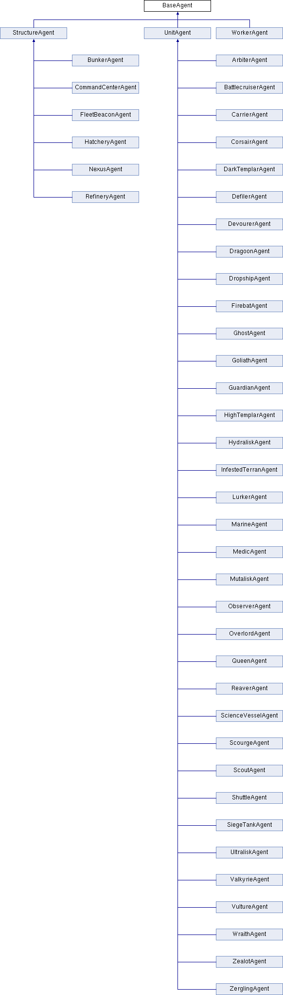 Reimplemented in ArbiterAgent, BattlecruiserAgent, BunkerAgent, CarrierAgent, CommandCenterAgent, CorsairAgent, DarkTemplarAgent, DefilerAgent, DevourerAgent, DragoonAgent, DropshipAgent, FirebatAgent, FleetBeaconAgent, GhostAgent, GoliathAgent, GuardianAgent, HatcheryAgent, HighTemplarAgent, HydraliskAgent, InfestedTerranAgent, LurkerAgent, MarineAgent, MedicAgent, MutaliskAgent, NexusAgent, ObserverAgent, OverlordAgent, QueenAgent, ReaverAgent, RefineryAgent, ScienceVesselAgent, ScourgeAgent, ScoutAgent, ShuttleAgent, SiegeTankAgent, StructureAgent, UltraliskAgent, UnitAgent, ValkyrieAgent, VultureAgent, WorkerAgent, WraithAgent, ZealotAgent, and ZerglingAgent.