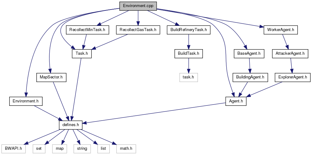 #include "Environment.h"#include "MapSector.h"#include "Task.h"#include "BuildRefineryTask.h"#include "RecollectMinTask.h"#include "RecollectGasTask.h"#include "Agent.h"#include "BaseAgent.h"#include "WorkerAgent.h"