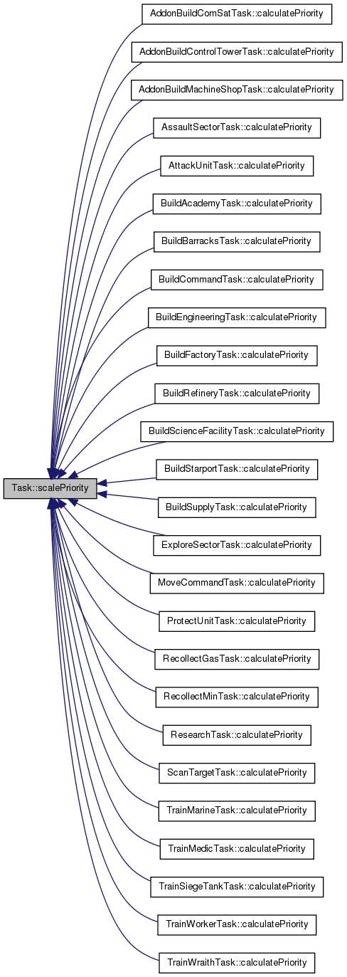 Implemented in AssaultSectorTask, ProtectUnitTask, ExploreSectorTask, AddonBuildTask, AttackUnitTask, AddonBuildComSatTask, AddonBuildControlTowerTask, AddonBuildMachineShopTask, MoveCommandTask, RecollectGasTask, RecollectMinTask, ScanTargetTask, ResearchTask, BuildAcademyTask, BuildBarracksTask, BuildCommandTask, BuildEngineeringTask, BuildFactoryTask, BuildRefineryTask, BuildScienceFacilityTask, BuildStarportTask, BuildSupplyTask, TrainMarineTask, TrainMedicTask, TrainSiegeTankTask, TrainWraithTask, and TrainWorkerTask.