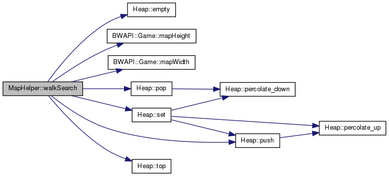 References BWAPI::Broodwar, Heap< Key, Val >::empty(), BWAPI::Game::mapHeight(), BWAPI::Game::mapWidth(), Heap< Key, Val >::pop(), Heap< Key, Val >::push(), Heap< Key, Val >::set(), Heap< Key, Val >::top(), WalkPosition::x, and WalkPosition::y.