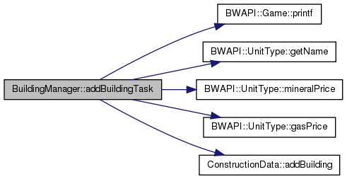 | void | addBuildingTask (BWAPI::UnitType type, BWAPI::TilePosition desiredLocation) |