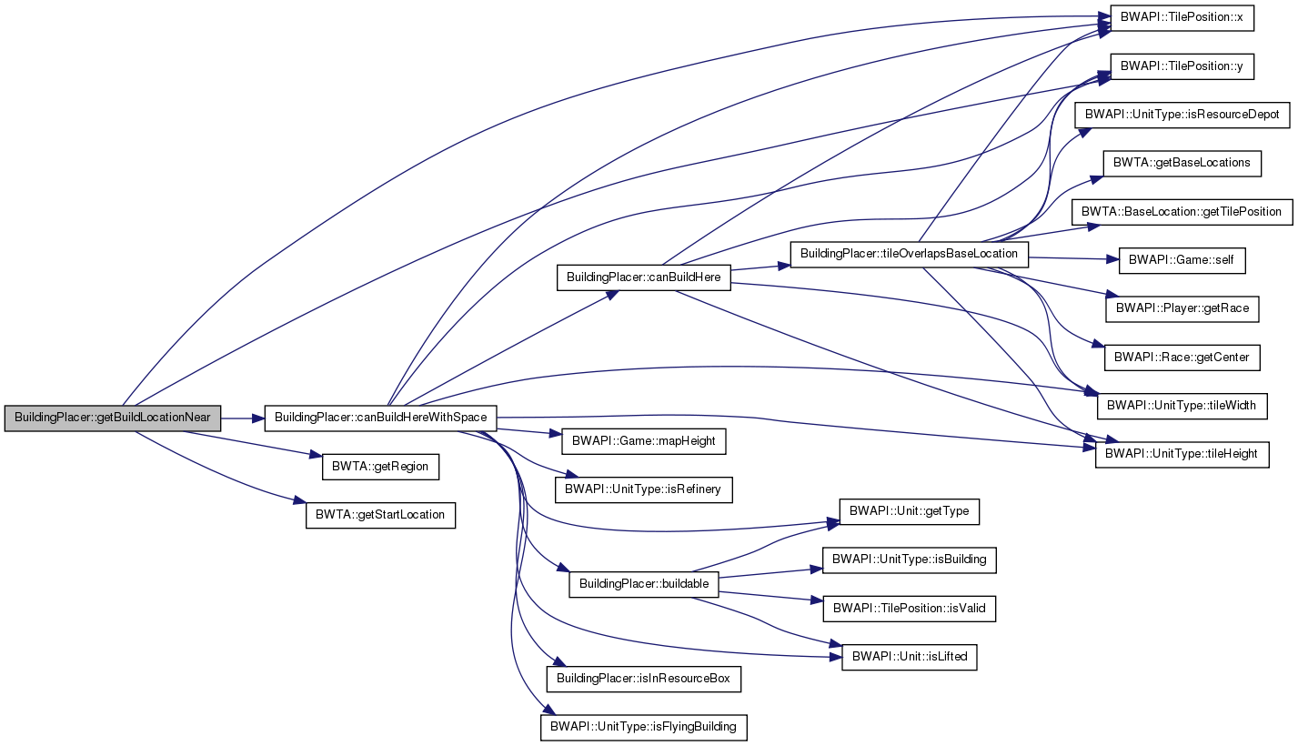 | BWAPI::TilePosition | getBuildLocationNear (const Building &b, int buildDist, bool inRegion=false, bool horizontalOnly=false) const |