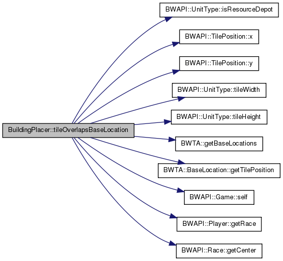 | bool | tileOverlapsBaseLocation (BWAPI::TilePosition tile, BWAPI::UnitType type) const |