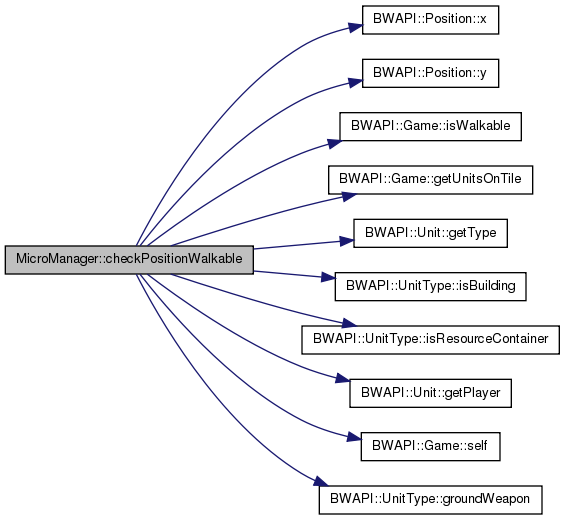 | bool | checkPositionWalkable (BWAPI::Position pos) |