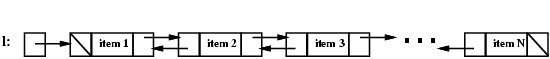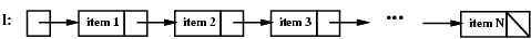 Here's a conceptual picture of a linked list containing N items, pointed to by a variable named l:
