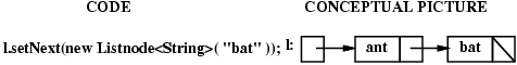 Assume that the list shown above (with nodes "ant" and "bat") has been created.