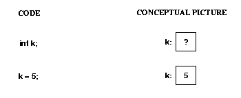 When you declare a variable with a primitive type, you get enough space to hold a value of that type. Here's some code involving a primitive type and the corresponding conceptual picture: