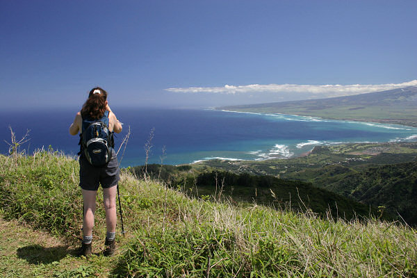Heather spotting whales from the Waihe'e Ridge Trail.