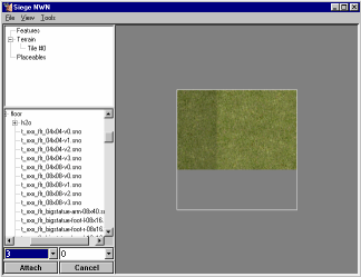 1) Using the DS Objects Tree (2), locate t_xxx_flr_08x08-v0.sno. This is located under terrain->generic->floor, and is simply an 8x8 meter flat stretch of grass. Each tile that we create is 12x12 Dungeon Siege meters large, or multiples thereof when creating groups. (In case you are curious, this will later be resized down to 10x10 meters for use in NWN)