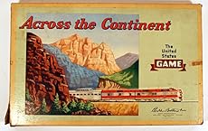 Each player draws a list of cities that they must visit, in sequence, which starts and ends at a particular city. Players roll the dice and move along their chosen routes to reach their target cities. Every time they throw doubles they must draw a card. Most cards have a question about a state capitol that rewards the player for answering correctly, or punishes them for answering incorrectly. Occasionally the cards have no question but just advance the player's car to the next destination. The first player to reach all of their cities and return home is the winner. Originally published 1890 (patent no. 469089), re-released by Parker 1901, 1910, 1922, 1952. This game may well have been the inspiration for the later games Pirate and Traveler, Boxcars and Rail Baron.